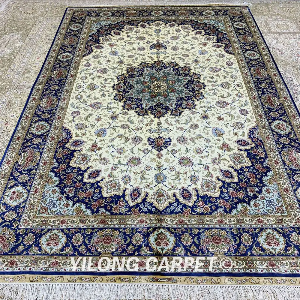 ORIGINAL Yilong 6'x9' Classic Persian Carpets White Exquisite Medallion Silk Rug (ZQG262A)