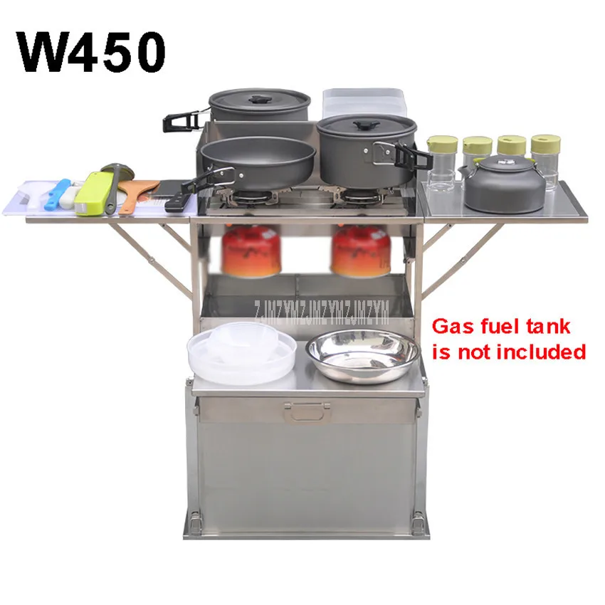 2-3 Person Outdoor Mobile Kitchen 304 Stainless Steel Foldable Cooking Desk Hiking Camping Gas Cook