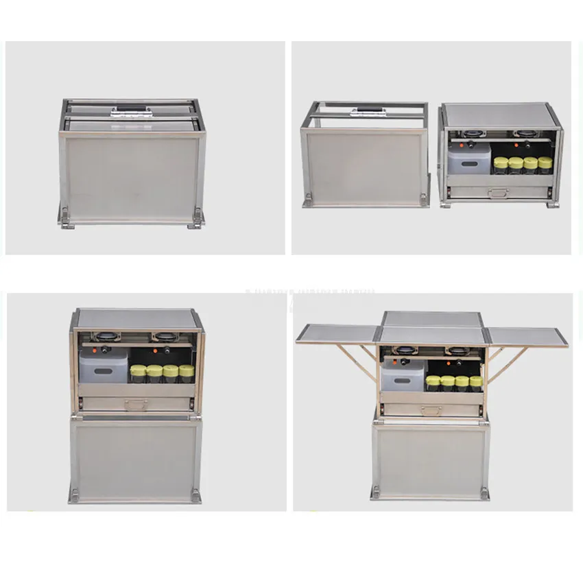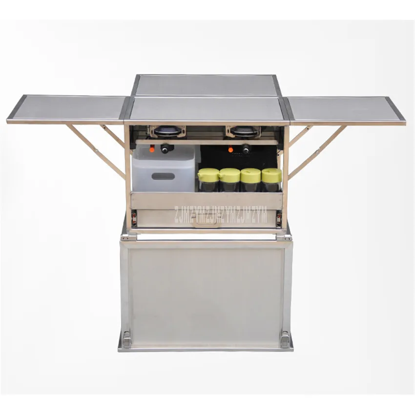 Best Seller 2-3 Person Outdoor Mobile Kitchen 304 Stainless Steel Foldable Cooking Desk Hiking Camping Gas Cook