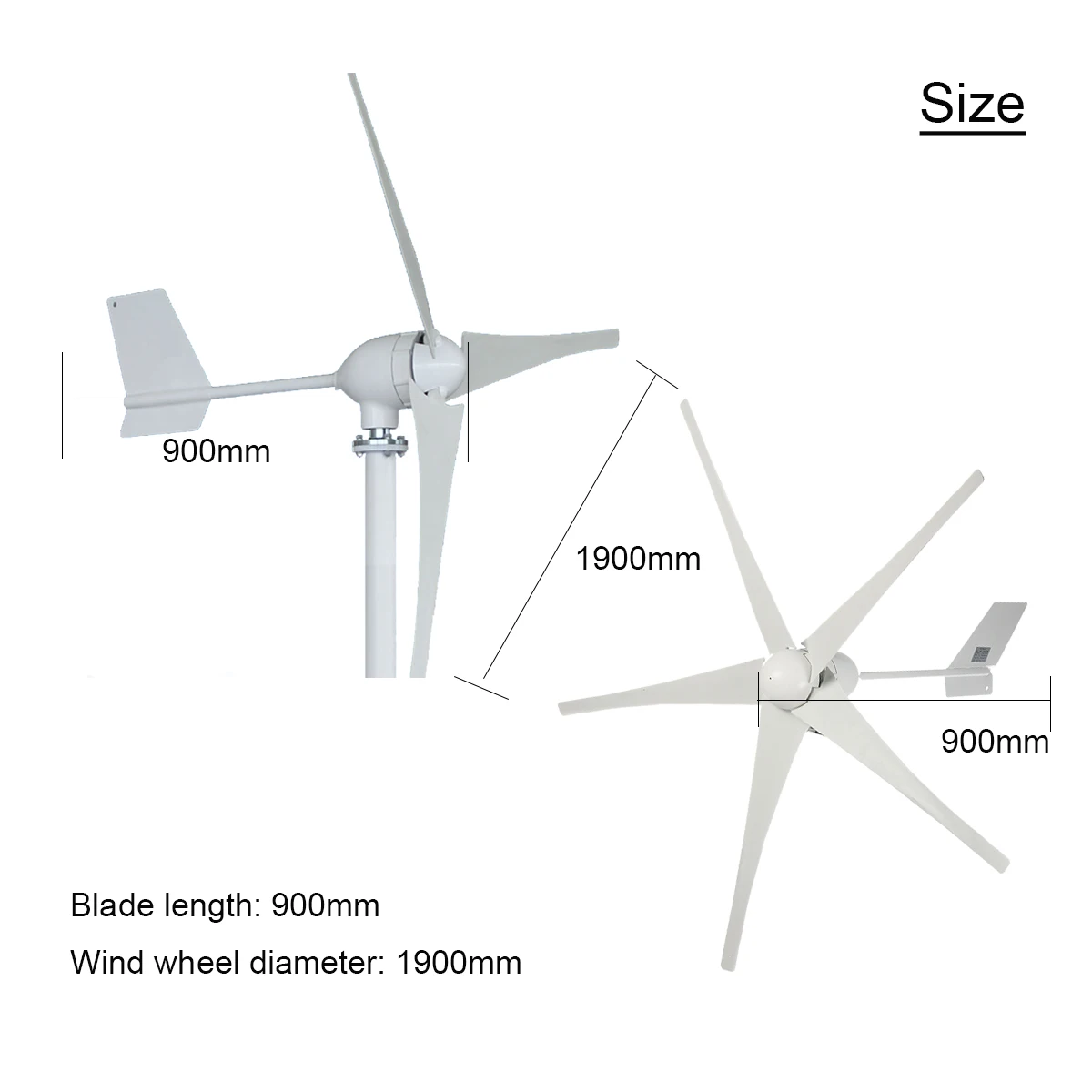 800W 24/48V Wind Power Generator 3/5 Wind Blades Option Generator Horizontal Fit for Home Camping S